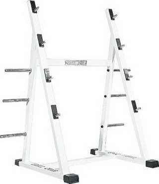 Стойка позволяет разместить четыре штанги и дополнительно, снабжена штырями для дисков.