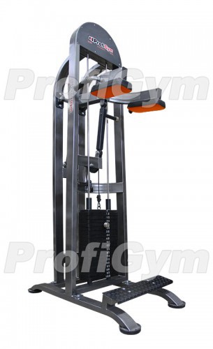 Прямое назначение данного станка – тренировка мышц голени в положении стоя. Упражнение на нем представляет собой подъем на носки, а нагрузку обеспечивает стек. Наплечники, которыми оснащена голень-машина, регулируются по высоте, поэтому заниматься могут спортсмены любого роста. Для изменения положения наплечников используется телескопический механизм. Также станок оборудован специальной нескользящей платформой, которая гарантирует устойчивость спортсмена и безопасное выполнение упражнения. ТЕХНИЧЕСКИЕ ХАРАКТЕРИСТИКИ ТРЕНАЖЕРА PROFIGYM ТГ-022: Материал рамы – металлический профиль с сечением 80 х 40 мм. Привод грузоблока – трос из нержавеющей стали диаметром 5 мм (выдерживает нагрузку до 1080 кг). Узлы вращения – шариковые подшипники закрытого типа (не требуют обслуживания). Обивка мягких элементов – прочная винилискожа на капроновой основе. Наполнитель мягких элементов – ПВВ плотностью 140 кг/куб.м. Окрашивание конструкции, как и нагружаемого тренажера – электростатическое высокотемпературное порошковое напыление (цвет рамы – серебристый металлик, цвет отдельных элементов – серебристо-черый). Направляющие для грузоблока – нержавеющие прутки с отшлифованной поверхностью для лучшего скольжения грузов. Опорные части тренажера – стальные ножки с отверстиями для крепления к полу, оснащенные резиновыми подпятниками диаметром 120 мм, толщина резины 20 мм. Они обеспечивают хорошее сцепление с поверхностью пола и гасят вибрацию. Нагрузка – обрезиненные плитки грузоблока с 2 тефлоновыми втулками для максимальной износостойкости и лучшего скольжения. Вес установленных грузов – 100 кг. Отягощения – 19 обрезиненных плит по 5 кг + 1 верхний груз с флейтой 5 кг. Размеры – длина 1200 мм, ширина 1050 мм, высота 1900 мм. Вес (в сборе) – 220 кг.