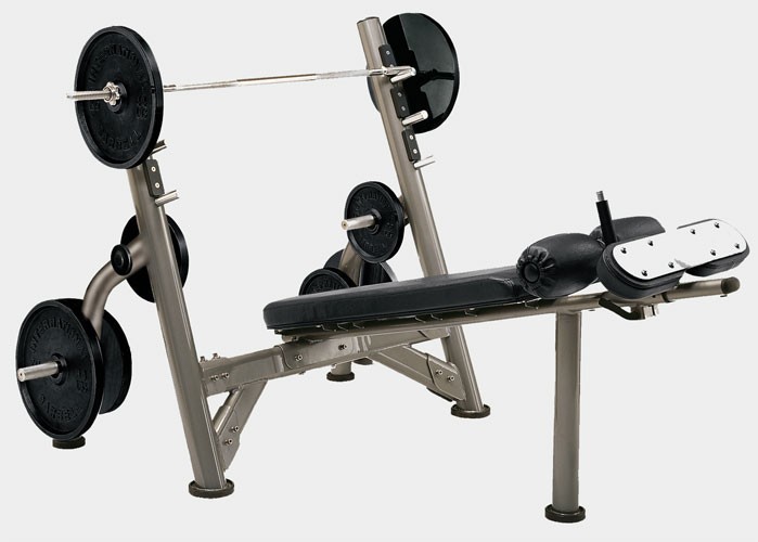 Профессиональная олимпийская скамья для жима с отрицательным углом наклона (-15 градусов). Регулируемый упор для ног.