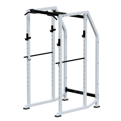 Тренажер оснащен 15 положениями для установки страховочных упоров и ловушек, что позволяет точно настраивать высоту под рост пользователя и выбранное упражнение. Порошковое термоотверждаемое покрытие защищает металлические элементы от коррозии и механических повреждений.