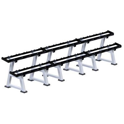 Профессиональная двухъярусная стойка для упорядоченного хранения широкого набора гантелей в силовых зонах.