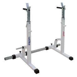 Универсальная стойка предназначена для тренировок со штангой в условиях комнаты (квартиры и т.п.). Стойка регулируется по высоте и по ширине. Регулировка по ширине позволяет применять грифы всех типов. Регулировка по высоте предназначена для жима штанги с различными углами и приседаний со штангой. Максимальная эффективность достигается в комплексном применении стойки и скамейки универсальной СТ 008. Стойки оснащены верхними основными ловушками с замками против сваливания грифа и дополнительными страховочными ловушками. На стойках установлены ручки для отжимания. Стойки оборудованы стопорами для быстрого изменения высоты и ширины, а также накопителями для дисков диаметром 25 мм.