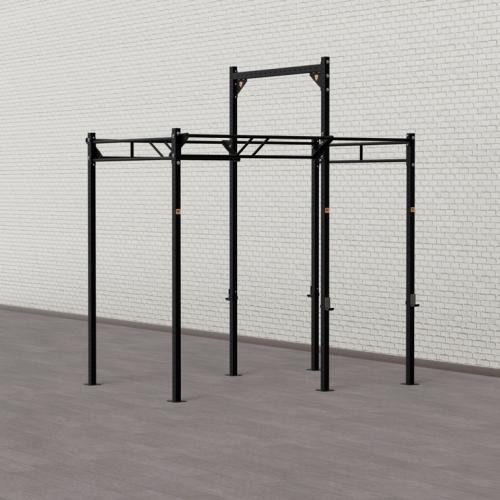 Свободностоящая рама 2,3х3,2 м Н 2,8-3,6 м для функционального многоборья (кроссфит) обеспечивает максимально возможное количество мест для занятий. Конфигурацию рамы с размерами и её составные части можно посмотреть в чертеже, размещённом в разделе "Документация". При необходимости разработаем раму под параметры конкретного зала.