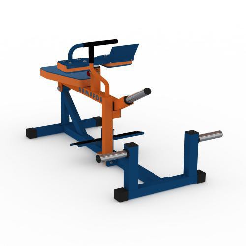 Тренажёр на свободных весах голень сидя (икроножная машина), с регулируемым упором, дополнительными накопителями дисков, удлинённым трапециевидным сиденьем, подушками упора, нагрузка до 150 кг Габариты в сборе, мм (ДхШхВ): 1395х850х900. Масса, не более, кг: 50. Максимальная масса нагрузки, не более, кг: 150. Максимальная масса тела пользователя, не более, кг: 150. Производство Россия. Тренажёр изготовлен из конструкционной стали, основной профиль рамы 60х60х3, накопители дисков диаметром 48,3 мм из нержавеющей стали, два роликовых радиально-упорных подшипника. Материал обивки износостойкая винилискожа Denkart (производство VOWALON, Германия). Порошковая окраска, возможность покраски в любой цвет по желанию заказчика. По применению тренажёр относится к профессиональному классу. Подробное руководство по эксплуатации.