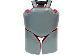 Состоит из двух частей: защитный жилет на корпус и щиты на бедра. Жилет крепится на корпусе с помощью лямок с липучками. Возможна регулировка по высоте и обхвату.