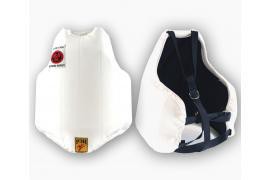 Благодаря жесткости конструкции кираса обеспечивает надежную защиту корпуса спортсмена от ударов спереди и по бокам.