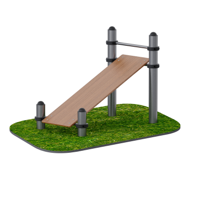 Скамья изготовлена из влагостойкой ламинированной фанеры толщиной 18 мм с противоскользящим тиснением. Поверхность устойчива к атмосферным воздействиям и обеспечивает безопасное положение тела во время тренировки.