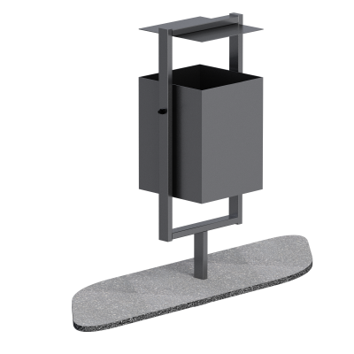Торцы рамы и крепёжные элементы запаяны либо закрыты декоративными заглушками, что повышает безопасность эксплуатации и придаёт изделию аккуратный внешний вид. Конструкция предусматривает бетонирование на глубину 250 мм, что обеспечивает надёжную фиксацию и устойчивость урны при постоянной нагрузке.