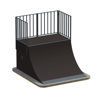Широкая рабочая зона обеспечивает комфортное движение и устойчивость при выполнении сложных элементов. Увеличенная высота радиуса позволяет формировать большую скорость и амплитуду, расширяя технические возможности райдеров. Усиленный металлический заезд защищает конструкцию от износа в зоне максимальной нагрузки.