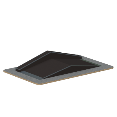 Фанбоксы такого типа чаще всего используют в стандартных комплектациях и устанавливают в центре площадки, формируя ключевую зону для выполнения прыжков и связок. Двухуровневая форма в виде ската крыши обеспечивает плавный разгон и удобный переход через верхнюю точку элемента.