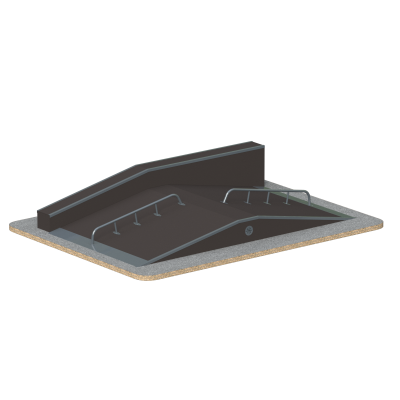 Элемент подходит для выполнения прыжков, мануалов, скольжений по рейлам и комбинированных переходов между уровнями на скейтборде, роликах, трюковых самокатах и BMX. Ширина 3280 мм формирует просторную рабочую зону, позволяя использовать элемент как центральную фигуру скейт-площадки.