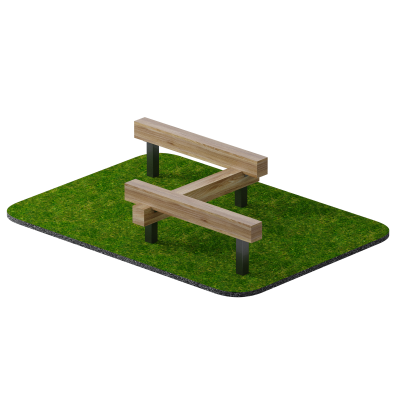 Рабочая поверхность выполнена из клееного деревянного бруса размером 160х140 мм. Клееный брус отличается высокой прочностью и устойчивостью к растрескиванию, что особенно важно при эксплуатации на открытых площадках. Деревянные элементы обработаны защитными пропитками, которые снижают воздействие влаги, перепадов температур и ультрафиолетового излучения.