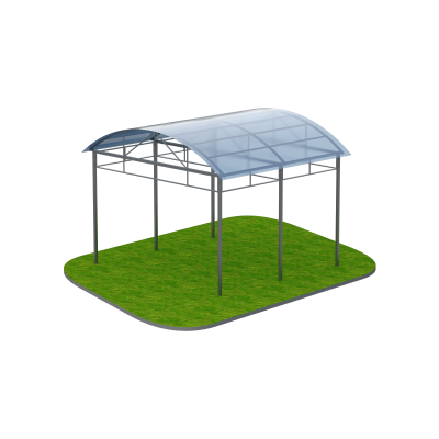 Кровля навеса выполнена из сотового поликарбоната толщиной 6 мм. Этот материал отличается высокой прочностью, устойчивостью к атмосферным воздействиям и ультрафиолетовому излучению. Поликарбонат пропускает достаточное количество естественного света, создавая комфортную освещенность под навесом и защищая пользователей от перегрева.