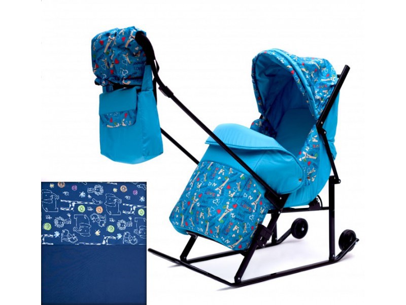Санки-коляска детские "Зимняя сказка 3В" синий цвет рамы белый