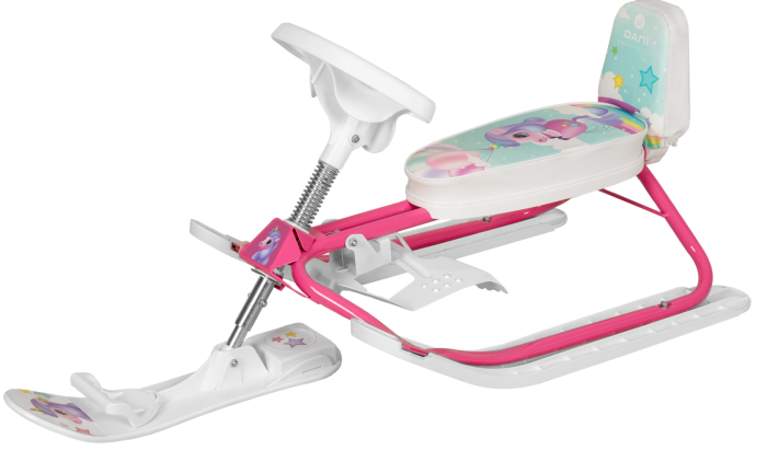Модель для малышей от 1,5 до 7 лет. • Удобная мягкая спинка, при необходимости её можно убрать. • Тёплое сиденье, эргономичный руль и сматыватель в комплекте. • Снегокат компактный и лёгкий – ребёнок без труда поднимет его в гору. • Безопасный, манёвренный, устойчивый на поворотах. • Выдерживает массу до 60 кг.