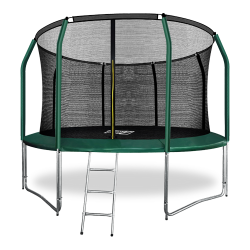 Батут премиум 12FT с внутренней страховочной сеткой и лестницей (Dark green)ARLAND