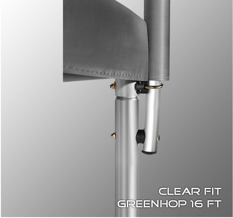 В 2026 году представлена обновленная линейка с улучшенной конструкцией каркаса. Усиление достигнуто за счет использования прочных Т-образных кронштейнов из металла толщиной 1.9 мм. Кроме того, в комплектацию добавлен карман для обуви. Каркасный батут с защитной сеткой Clear Fit серии GreenHop — отличаются комфортом и надежностью. Надежная рама из качественных комплектующих, прочная защитная сеть снабжена прямым креплением к прыжковому полотну и дополнительной защитой входа, наверху каркасное жесткое крепление, сеть не провисает и не слетает во время тренировок. Увлекательный, полезный и безопасный тренажер для всей семьи. Батуты серии GreenHop 10Ft, 12Ft, 14Ft и 16Ft поставляются в оптимальной для комфорта и безопасности комплектации: батут, верхняя защитная сеть, защитный мат, лестница и карман для обуви. Батут размером в 16 футов с прыжковой поверхностью 4.38 м идеально подходит для пользователей любого возраста и физической подготовки, размеры позволяют комфортно тренироваться взрослым и развлекаться детям, включая подростков и спортсменов. Верхняя защитная сеть оберегает от падений, усиленная молния и дополнительная защита входа уберегут малышей от случайного входа или падения. Надежный каркас из оцинкованной стали, качественные комплектующие и погодостойкие гальванизированные метизы рамы делают батут безопасным, устойчивым, надежным, гарантируют полную защиту от коррозии и долгий срок службы. Качественные материалы и мощная рама батута GreenHop 16Ft предусматривают эксплуатацию с нагрузкой до 300 кг.