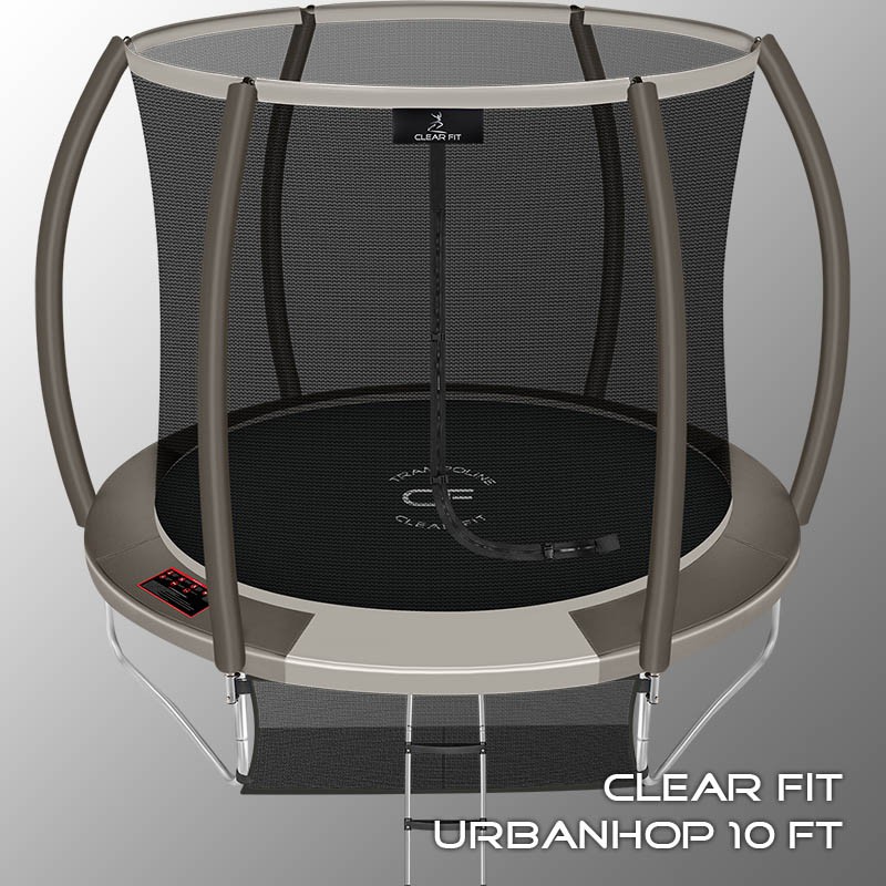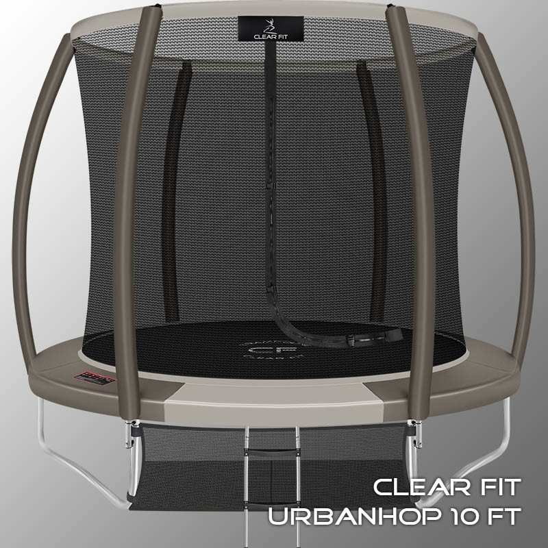 В 2026 году представлена обновленная линейка с улучшенной конструкцией каркаса. Усиление достигнуто за счет использования прочных Т-образных кронштейнов из металла толщиной 1.9 мм. Кроме того, в комплектацию добавлен карман для обуви. Каркасный батут с защитной сеткой Clear Fit серии UrbanHop — отличаются комфортом и надежностью. Надежная рама из качественных комплектующих, прочная защитная сеть снабжена прямым креплением к прыжковому полотну и дополнительной защитой входа, наверху каркасное жесткое крепление, сеть не провисает и не слетает во время тренировок. Увлекательный, полезный и безопасный тренажер для всей семьи. Батуты серии UrbanHop 10Ft, 12Ft, 14Ft и 16Ft поставляются в оптимальной для комфорта и безопасности комплектации: батут, верхняя защитная сеть, защитный мат, лестница и карман для обуви. Благодаря размеру батута в 10 футов и диаметру прыжковой поверхности 2.62 м он идеально подходит для дачного участка, размеры полотна позволяют комфортно тренироваться взрослым и развлекаться детям любого возраста. Верхняя защитная сеть оберегает от падений, усиленная молния и дополнительная защита входа уберегут малышей от случайного входа или падения. Надежный каркас из оцинкованной стали, качественные комплектующие и погодостойкие гальванизированные метизы рамы делают батут безопасным, устойчивым, надежным, гарантируют полную защиту от коррозии и долгий срок службы. Максимальный вес пользователя батута UrbanHop 10Ft — до 170 кг.