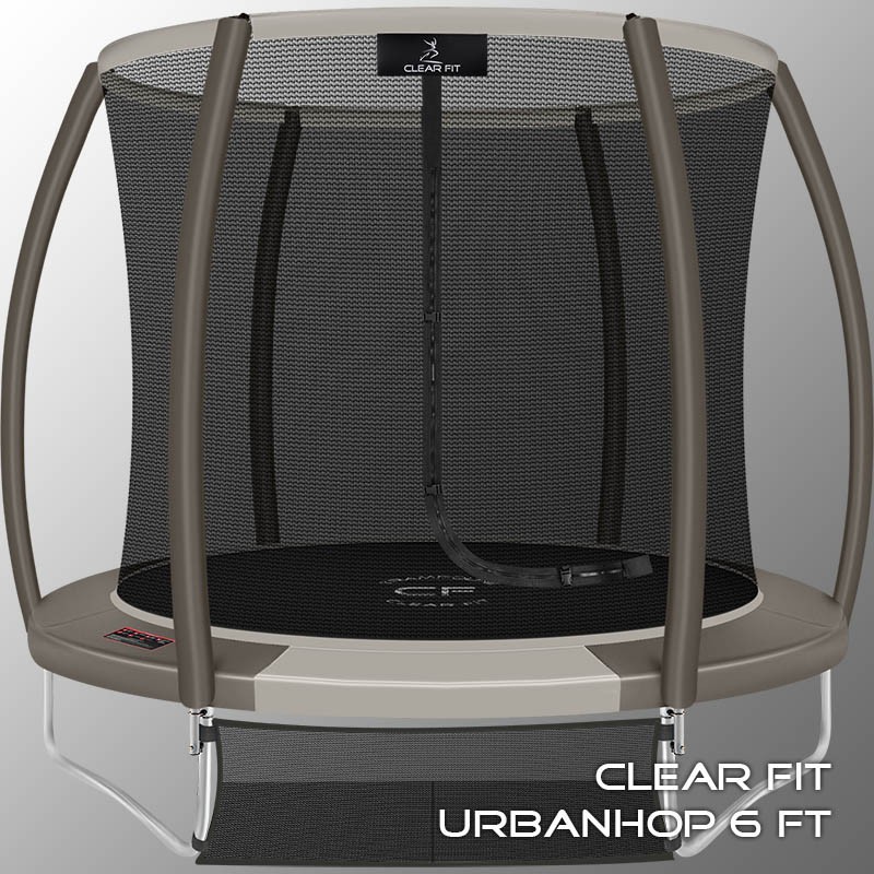 В 2026 году представлена обновленная линейка с улучшенной конструкцией каркаса. Усиление достигнуто за счет использования прочных Т-образных кронштейнов из металла толщиной 1.9 мм. Кроме того, в комплектацию добавлен карман для обуви. Каркасный батут с защитной сеткой Clear Fit серии UrbanHop — отличаются комфортом и надежностью. Надежная рама из качественных комплектующих, прочная защитная сеть снабжена прямым креплением к прыжковому полотну и дополнительной защитой входа, наверху каркасное жесткое крепления, сеть не провисает и не слетает во время тренировок. Увлекательный, полезный и безопасный тренажер для всей семьи. Батуты серии UrbanHop 6Ft и 8Ft поставляются в оптимальной для комфорта и безопасности комплектации: батут, верхняя защитная сеть, защитный мат и карман для обуви. Размер батута 8 футов с прыжковой поверхностью 2.015 м легко разместить на любом участке, он подойдет и для детских игр, и для тренировок. Верхняя защитная сеть оберегает от падений, усиленная молния и дополнительная защита входа уберегут малышей от случайного входа или падения. Надежный каркас из гальванизированной стали, качественные комплектующие и погодостойкие метизы рамы делают батут безопасным, устойчивым, надежным, гарантируют полную защиту от коррозии и долгий срок службы. Максимальный вес пользователя батута UrbanHop 8Ft — до 160 кг.