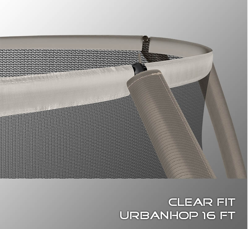 В 2026 году представлена обновленная линейка с улучшенной конструкцией каркаса. Усиление достигнуто за счет использования прочных Т-образных кронштейнов из металла толщиной 1.9 мм. Кроме того, в комплектацию добавлен карман для обуви. Каркасный батут с защитной сеткой Clear Fit серии UrbanHop — отличаются комфортом и надежностью. Надежная рама из качественных комплектующих, прочная защитная сеть снабжена прямым креплением к прыжковому полотну и дополнительной защитой входа, наверху каркасное жесткое крепление, сеть не провисает и не слетает во время тренировок. Увлекательный, полезный и безопасный тренажер для всей семьи. Батуты серии UrbanHop 10Ft, 12Ft, 14Ft и 16Ft поставляются в оптимальной для комфорта и безопасности комплектации: батут, верхняя защитная сеть, защитный мат, лестница и карман для обуви. Батут размером в 16 футов с прыжковой поверхностью 4.38 м идеально подходит для пользователей любого возраста и физической подготовки, размеры позволяют комфортно тренироваться взрослым и развлекаться детям, включая подростков и спортсменов. Верхняя защитная сеть оберегает от падений, усиленная молния и дополнительная защита входа уберегут малышей от случайного входа или падения. Надежный каркас из оцинкованной стали, качественные комплектующие и погодостойкие гальванизированные метизы рамы делают батут безопасным, устойчивым, надежным, гарантируют полную защиту от коррозии и долгий срок службы. Качественные материалы и мощная рама батута UrbanHop 16Ft предусматривают эксплуатацию с нагрузкой до 300 кг.