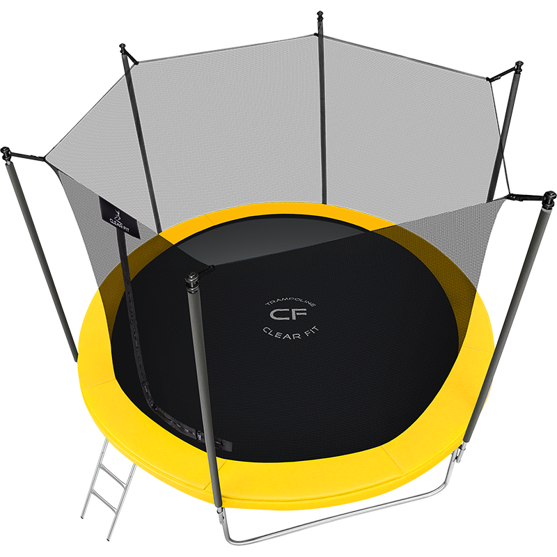Каркасный батут Clear Fit серии ColorHop доступен в четырех цветах: желтый, оранжевый, серый и зеленый. Эта серия отличается комфортом и надежностью. Прочная рама из качественных материалов и надежная защитная сетка, закрепленная на прыжковом полотне и дополненная защитой входа, обеспечивают безопасность и удовольствие от тренировок. Батуты ColorHop — это увлекательное и полезное развлечение для всей семьи. В комплект входят: батут, верхняя защитная сетка, защитный мат и лестница, что делает его идеальным для использования на даче. Размер батута 10 футов (диаметр прыжковой поверхности 2.62 м) позволяет комфортно заниматься взрослым и веселиться детям любого возраста. Верхняя защитная сеть предотвращает падения, усиленная молния и дополнительные элементы входа защищают малышей от случайного проникновения или падения. Оцинкованная стальная рама, качественные комплектующие и погодостойкие метизы обеспечивают долговечность и устойчивость батута, защищая его от коррозии. Максимальный вес пользователя — до 160 кг.