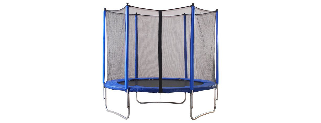 Преимущества - Поверхность для прыжков изготовлена из полипропилена - прочного и упругого материала, устойчивого к влаге, ультрафиолету и неблагоприятным погодным условиям. - Конструкция имеет простой в сборке каркас, выполненный из жестких металлических труб с круглым сечением. - По периметру батута предусмотрен мягкий чехол, который скрывает пружины и прочие мелкие детали для безопасности малышей. - Три U-образные опоры обеспечивают хорошую устойчивость во время интенсивных прыжков. - Плотная сетка защищает от падения, полностью закрывается на молнию. Область применения Батут с защитной сеткой устанавливается на ровный газон. Неподходящие поверхности - бетон, асфальт, садовая плитка. Технические характеристики Общие параметры Форма: Круглая форма С защитной сеткой: С сеткой Максимальная нагрузка: 110 кг Диаметр: 244 см Высота без защитной сетки: 60 см Высота с защитной сеткой: 222 см Диаметр прыжковой поверхности: 216 см Количество пружин: 48 шт