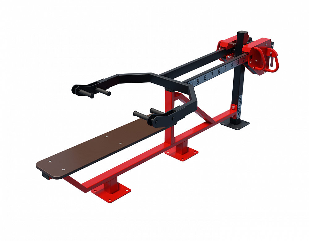 Тренажер имеет прочную антивандальную конструкцию из стального профиля и практически не требует обслуживания. Рама тренажера выполнена из профильной трубы размерами 80х40 и толщиной стенки 3мм. В качестве регулировки нагружаемого веса используется цельнолитой груз.